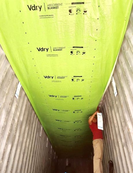 Trong vận chuyển đường biển, hàng hóa thường xuyên đối mặt với hiện tượng đọng sương container (container rain), dẫn đến ẩm mốc, phai màu, biến chất hoặc hư hại nghiêm trọng. Vdry Blanket được thiết kế như một tấm chăn siêu hấp thụ, giúp kiểm soát độ ẩm trong container và bảo vệ hàng hóa an toàn trong mọi điều kiện khí hậu.